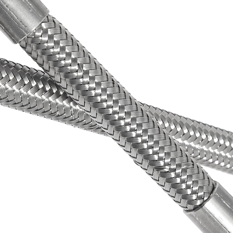 - The stainless steel outer braid protects the inner hose from abrasion, cuts, impacts, and external damage, significantly extending its lifespan.