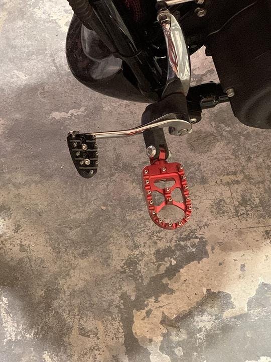 5/16-24-3/4 inch screws and spring washers are used to connect the foot pedal head. It can be matched with our brake lever and gearshift lever, or it can be matched with customer original levers. The distance between the tread surface and the pole can be adjusted to improve the rider's riding comfort.